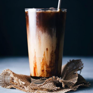 دویست و هشتاد میلی لیتر شیر پر چرب - دبل شات 100 عربیکا - یخ - کوکی